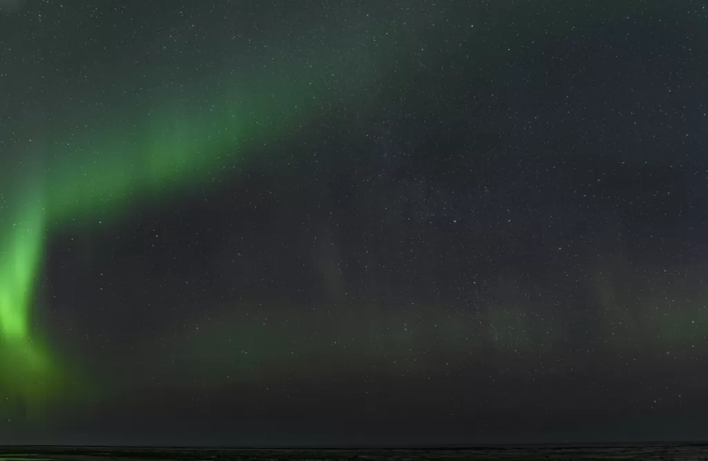 The peninsula’s remote location and minimal development mean very little light pollution, and the coastal position offers unique opportunities to capture the lights reflecting off the North Atlantic Ocean.