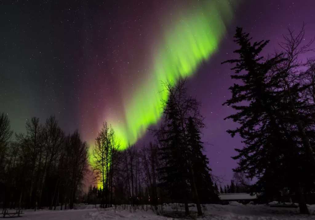 Located in the heart of Alaska’s interior, Fairbanks sits under the “aurora oval,” experiencing aurora activity on over 200 nights per year. The city’s infrastructure is well-developed for aurora tourism, yet you’re never far from pristine wilderness viewing locations.