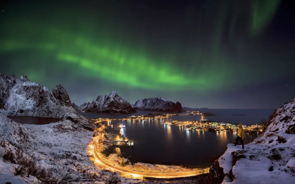 Known as the “Gateway to the Arctic,” Tromsø sits right in the middle of the aurora belt, making it one of the most accessible and reliable places to see the Northern Lights. The city combines urban comfort with immediate access to dark sky locations, perfect for aurora hunting!