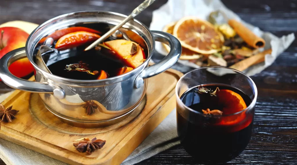 In Scandinavian countries, Swedish Glögg takes mulled wine to new heights. While similar to its German cousin, Glögg distinguishes itself with the addition of cardamom pods and almonds. The real magic happens when dried fruit – particularly raisins and orange peel – slowly simmers in the mixture, creating a complex flavor profile that’s simultaneously sweet, spicy, and warming. Pro tip: serve it with a small spoon to enjoy the booze-soaked fruits at the bottom of your glass!
