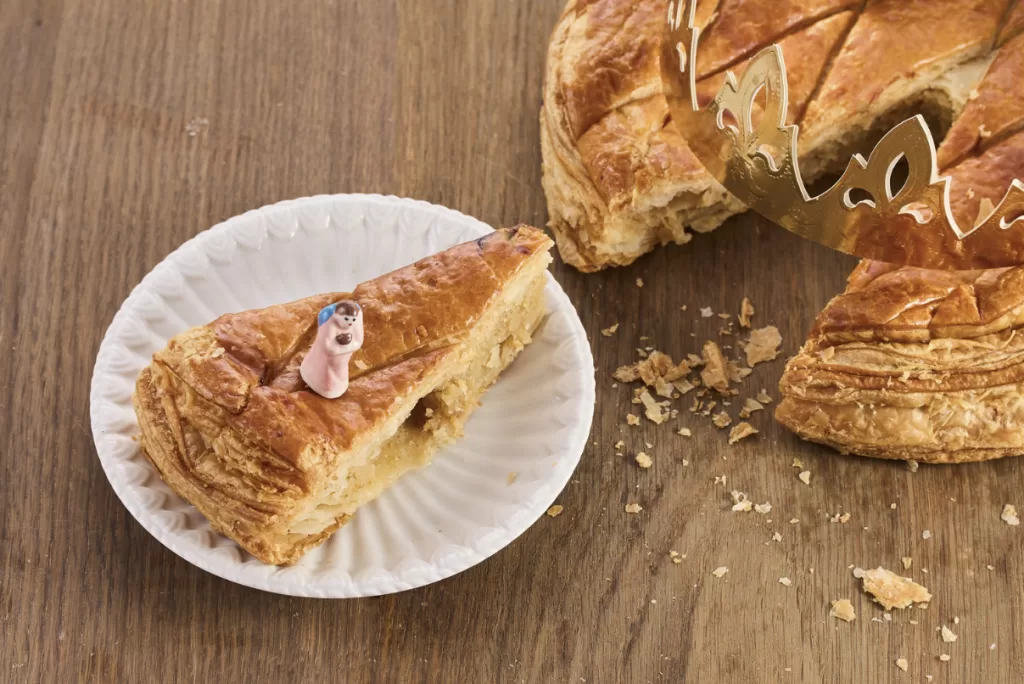 Cross the Atlantic to France, and you’ll discover the elegant galette des rois – a completely different take on the tradition. Instead of the sweet, decorated ring we know from Mardi Gras celebrations, French bakers create a sophisticated pastry made of buttery puff pastry layers filled with frangipane, a rich almond cream. The top is typically scored in an elegant pattern and glazed to golden perfection!